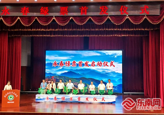 首发仪式。东南网记者 施远圻 摄 东南网8月6日讯(本网记者 施远圻 通讯员 吴金灿 颜彩虹)今天上午,集体林权改革的新形式"绿票"在泉州市永春县首发。 据了解,永春是福建省重点林区县,森林覆盖58.5%,森林蓄积量达781万立方米,林业总产值达150亿元,2014年被确定为深化集体林权制度改革试点区域。发行“绿票”旨在探索林权资产折算量化机制上先行先试,有力有序解决产权制度、资源管理、经营模式、投入机制、产业发展等问题,推动林业高质量发展。 首发仪式上,永春县推出了“两票一中心”(永春“绿票”、永春林业碳票及永春县生态产品交易中心),发布“永碳通”小程序,进行绿票项目授信及金融产品推介,颁发首批永春“绿票”,介绍了林业碳票应用,签约了生态产品交易平台等多个合作协议,招商推介了永春县生态产品电商中心。 |