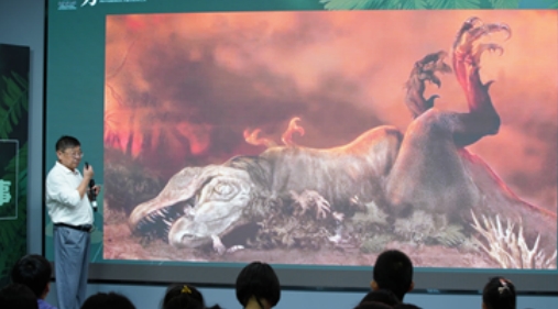 国家植物园(北园)副园长魏钰主持活动 国家自然博物馆教授李建军巧妙地运用一系列引人入胜的照片和视频,激情洋溢地讲述了恐龙的故事,让观众感觉穿越时空去探索恐龙的神秘世界。