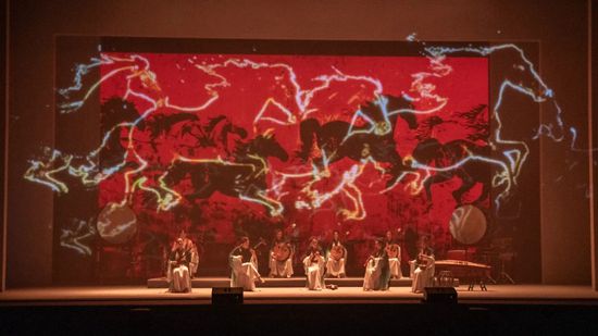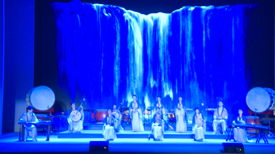 演出共有四个“乐章”。启幕的第一章,全场寂静的“深处”以一声响板、一起阮语,将观众引入万物复苏的春的世界,幻化绚丽的数字艺术与古老清丽的南国乐音同台“共舞”,演绎了《阮音春沐》。当观众意犹未尽之时,舞台“翻启”了第二乐章《雅韵伶歌》,呈现了时光逆流、陋室铭志、山不在高、有“仙”在此的传统山水意境。第三乐章《颂风今吟》展卷时,悠悠天地间,忽然鼓乐齐鸣,人世风情,翻山渡水。第四章《景声合鸣》,则徐徐展现一派春和景明,但见舞台近景、远景互映有致,真可谓走马旧曲新吟,闽南古意梦长;落霞与孤鹭齐飞,秋水共长天一色。