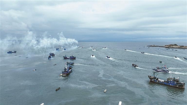 万“箭”齐飞,奔向大海。 本报讯 (融媒体记者黄枫 通讯员林颖 曾鍊 文/图)近日,泉州台商投资区为期3个半月的休渔期结束,渔民开启新一轮的“耕海”征程。 8月16日上午,渔民们早早地聚集在各自的渔船上,紧锣密鼓地进行出海前的各项准备工作,渔港恢复了往日的热闹。修补渔网、检查设备、补充物资,每一项都透露出他们对新一轮捕捞季的期待与信心。渔船马达的轰鸣声、渔民的吆喝声此起彼伏,开渔的喜悦洋溢在渔民脸上。 随着中午12时开渔令下达,在热烈的烟花爆竹声中,聚集在张坂镇浮山渔港的渔船们有序出港,开启新征程。 |