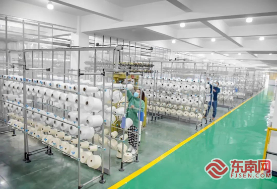 新同兴—织造车间里工人们在仔细检查丝线。惠安县政府办 供图 |