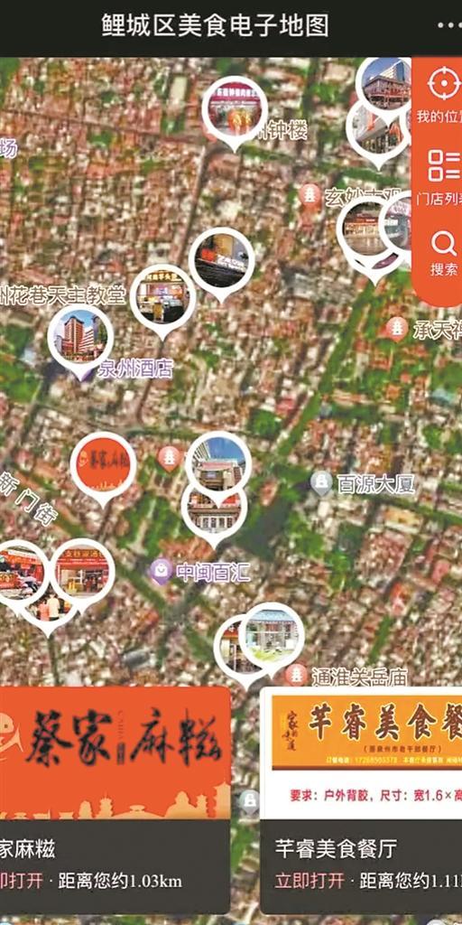 美食电子地图页面 记者从鲤城区商务局获悉,鲤城区美食电子地图(以下简称“美食地图”)新版本已正式更新上线,超百家各类型餐饮店入驻,一键导航即可到店,方便市民游客寻味古城。 打开新版美食地图,原本较为模糊杂乱的实景地图已升级为简洁明了的平面地图,街道名称、地标性建筑、重要景点等内容均清晰标注其上,市民游客可以清楚定位自身位置,附近餐饮店、周边景点等信息一目了然。远芳小笼包、蔡家麻糍、斯丹姜母鸭……目前已有近百家餐饮店在地图上标注,涵盖了泉州“古早味”、街头美食等,种类十分丰富。为了方便市民游客挑选,入驻的餐饮店都上传了店内环境图片、门店介绍和联系电话,市民游客选定餐饮门店后可一键导航前往。 在功能模块设置方面,美食地图增设了“分类”板块,按照“最家常”“最风情”“最时尚”三个主题,对入驻的餐饮店进行分类。其中,“最家常”即本土闽南特色家常菜,“最风情”为具有异域风情元素的特色美食,“最时尚”就是当下流行、时兴的特色美食。鲤城区商务局工作人员告诉记者,目前,他们仍在不断完善美食地图的各项功能,并将继续引导商家入驻,让市民游客“一图在手”就能“吃遍古城”。 为了让广大市民游客吃得放心、吃得安心,相关部门也将逐步设置准入门槛,确保所有入驻美食地图的餐饮门店有特色、有质量。在消费过程中,市民游客如果遇到抬价、宣传和实物不符等问题,也可拨打12315进行投诉。(通讯员赖良德 东南早报融媒体记者张素萍 文/图) |