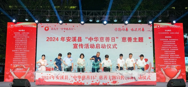 “中华慈善日”慈善主题宣传活动启动仪式。 近日,2024年安溪县“崇德向善 依法兴善”慈善晚会在县人民政府广场举行,安溪县领导梁金良、陈剑宾、洪金城、吴振法、汪礼才、林毅敏出席活动。 近年来,安溪县委、县政府始终践行“安老、扶幼、助学、济困”的慈善宗旨,把慈善公益作为改善民生福祉、促进共同富裕的重要举措,全力推进茶乡大地阔步前行。自2021年以来,全县累计募集善款善物超2.2亿元,“99公益日”网捐金额屡创新高,各类慈善机构、广大爱心企业、社会各界人士等大力开展助学、助医、助老、助残公益服务,慈善活动十分活跃。特别是以林秀成、柯希平、王文礼等为代表的一大批爱心人士,慷慨解囊、无私奉献,以慈善之心温暖茶乡大地! 安溪县直有关部门以高度的责任感和使命感,严格管理、专款专用,建立健全线上线下募捐机制、慈善项目全额公示机制、项目建设评审机制,让爱心绽放光芒、让真情共筑希望。安溪将持续把慈善事业作为推进安溪经济社会发展的一大抓手,持之以恒传播慈善文化、实施惠民项目、搭建慈善桥梁,与大家一起绘就有温度、有力量、有情怀的安溪慈善公益画卷。