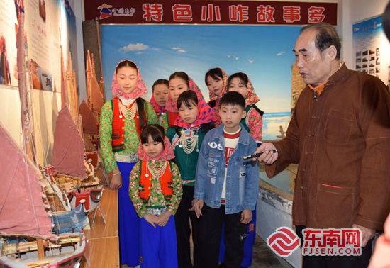 林闻绿向小朋友们介绍福船知识。受访者 供图 除了惠女服饰,特色小岞展馆的渔耕、民俗农具等老物件也成为小岞生活艺术岛的历史文化遗产。在林闻绿的努力下,展馆创办6年来,迄今为止共有藏品2000余件,接待各地参观游客20多万人次,实实在在地展示传播了惠安民俗和惠女文化,获评泉州市职工思想教育基地、惠安县家风家教示范基地、惠安县青少年优秀传统文化实践基地等。 此外,林闻绿还利用各种活动契机,排练了100多场惠安女表演,编写了数十首脍炙人口的南音、闽南语快板、歌谣等,唱响大美小岞,赞颂惠安女文化。 “勤劳美丽惠安女,银链垂腰服饰奇,宽裤花巾戴黄笠,中华文化称非遗……”由林闻绿作词的歌曲《美丽惠安女》饱含着一位老人对惠安女和家乡文化的赞美与热爱。 “惠女文化是我们惠安的一大品牌,一定不能让它消失。”林闻绿说,这是他有生之年的希望。