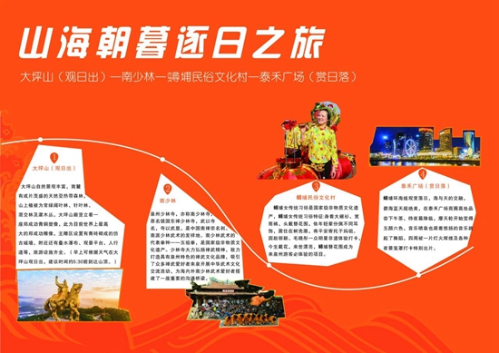 东南网9月28日讯(本网记者 黄雨昕)泉州市丰泽区旅游资源丰富,辖区现有A级景区4处,国家级非物质文化遗产1项,“泉州:宋元中国的世界海洋商贸中心”遗产点4处,省级文物保护单位8处。为丰富市民和游客体验,国庆假期来临之际,丰泽推出三条精品特色旅游路线,带领市民游客奔赴山与海,感受千年古城的厚重与沧桑,领略现代都市的繁华与时尚。 第一条路线:山海朝暮逐日之旅【大坪山(观日出)——南少林——蟳埔民俗文化村——泰禾广场(赏日落)】:该路线结合丰泽海丝文化和泉州城市文化,带领市民游客感受从晨曦到夜幕,从自然到都市的绝美之旅。