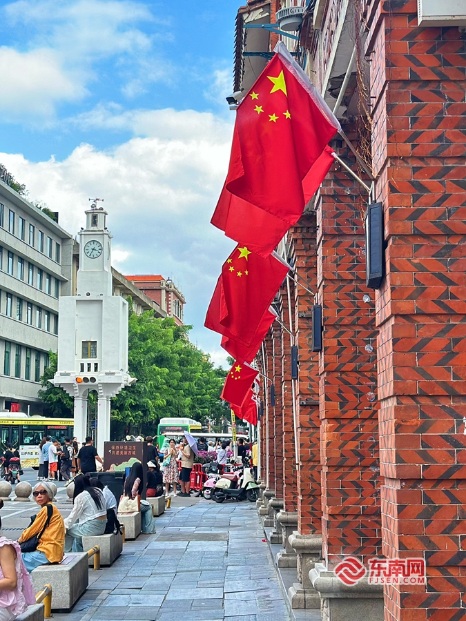 泉州西街街头国旗飘扬,国庆氛围渐浓。东南网记者 林婕 摄