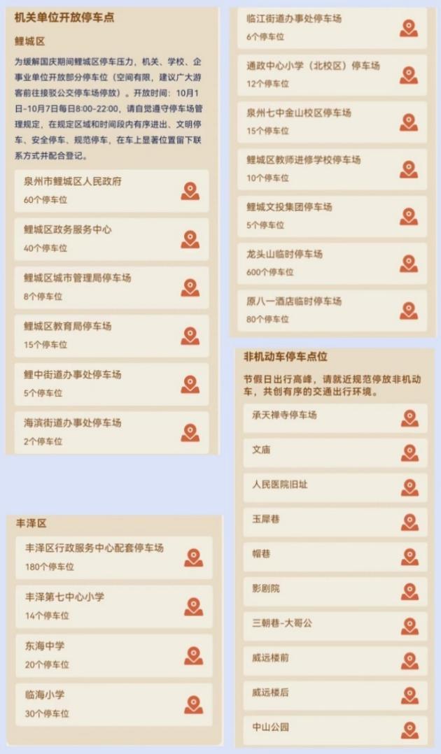 国庆假期泉州将开放部分机关单位停车位 市民游客可免费停