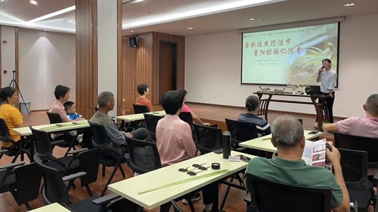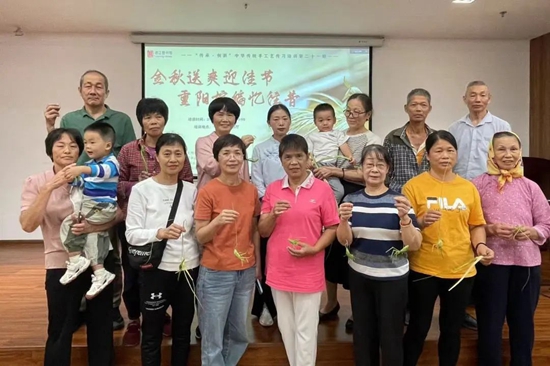 在这金秋送爽、丹桂飘香的重阳佳节之际,10月10日,洛江区图书馆里举办了一场意义非凡的“传承·创新”中华传统手工艺传习培训第21期——“金秋送爽迎佳节·重阳棕编忆往昔”暨我们的节日·重阳’主题活动。此次活动不仅弘扬了中华民族尊老、爱老、助老的传统美德,还通过棕编这一国家级非物质文化遗产技艺的传习,增强了社区凝聚力,让老年人在互动中共同感受中华传统文化的魅力。 活动伊始,手工艺人李瑞霞老师生动讲解棕编的历史背景、文化内涵和精湛技法,为老年人们开启了一扇通往棕编艺术世界的大门。李老师详细介绍了棕编技艺中的单编和双编等基本技法,单编以其简约而富有弹性的特点著称,而双编则通过交叉编织,展现出更加复杂而精美的图案。 实践环节中,李老师带领大家重温儿时记忆,教大家编织有趣的粽编蚂蚱。她一边演示,一边耐心指导,只用到单编技巧,就将一根根棕条巧妙地编织成栩栩如生的蚂蚱。老人们紧跟李老师的步骤,手中的棕条在大家的编织下逐渐成形,变成了一只只活泼可爱的“小蚂蚱”。