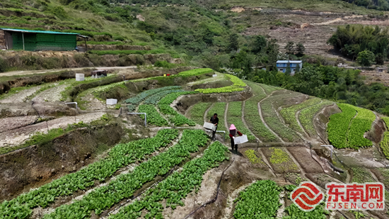 高山蔬菜高标准农田。永春县呈祥乡 供图 产业富民 “高山蔬菜”受追捧 在呈祥有机公社的山地上,映入眼帘的便是一片绿意盎然、生机勃勃的景象,上海青、芥包、空心菜等绿叶蔬菜长势良好,工人们正在地里采摘新鲜蔬菜,蔬菜再通过轨道运输直接送往仓库打包。“我们农场里有运输轨道8条、近3公里长,目前绿叶蔬菜日均产成能达到近5000斤,销往中闽百汇、永春新发等商超及福州九号食堂连锁餐饮企业,不少顾客现在就认准我们‘雪山呈祥菜’的品牌。”“80后”回乡创业的党员青年黄金丽介绍道。 兴一个产业,富一方百姓。呈祥乡党委始终将“产业富民”作为助推乡村振兴的重要抓手,有力推动产业优化发展。 “乡里积极推进高标准农田建设,还建设了灌溉渠道、喷灌和蓄水池等灌溉设施,保障了我们农业灌溉的需求,大大节约了时间和人工成本。乡里硬化机耕道路,也有利于我们中部农田的开发。”黄金丽说,现在商超里,每天从呈祥有机公社送达上架的“雪山呈祥菜”深受群众喜爱,引得许多顾客驻足采购。 近年来,呈祥乡扶持呈祥有机公社、雪山生态科技有限公司等企业,在泉州28家商超设置专柜,带动产生经济效益2000多万元,打响“雪山呈祥菜”“雪山闲云野生茶”高山农业品牌,推动呈祥村(白菜)成功入选省级“一村一品”特色产业示范村。同时,通过设立“生态农场+即时配送中心”政企合资项目,建立健全高山蔬菜配送链条,解决当地群众百余人就业。 |