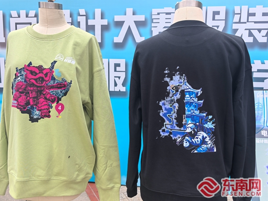 优秀参赛作品展示。东南网记者 谢玉妹 摄 来自泉州纺织服装职业学院23级服装与服饰设计专业的林恒蕾凭借作品《宝盖无畏·草隐先锋》在此次比赛中获得二等奖。“当代年轻人比较少接触、少了解一些传统文化,此次比赛不仅很好地将电竞和传统文化以及服装产业结合起来,也吸引了更多年轻人关注。”林恒蕾此次代表石狮市宝盖镇参赛,作品以蓝色为主色调,结合姑嫂塔和草丛中的战士等游戏元素进行创新设计,通过动漫绘画风格呈现,传达出青春活力,增强青年人的文化自信。 当天还举行了“电竞+服装”设计行业合作单位揭牌仪式,并举行石狮纺织服装产业联盟与泉州市电子竞技协会战略合作签约仪式,合作双方将围绕“电竞+纺织服装”共同探索发展新路,使电竞产业成为驱动石狮城市发展的新引擎。