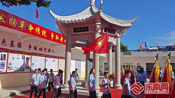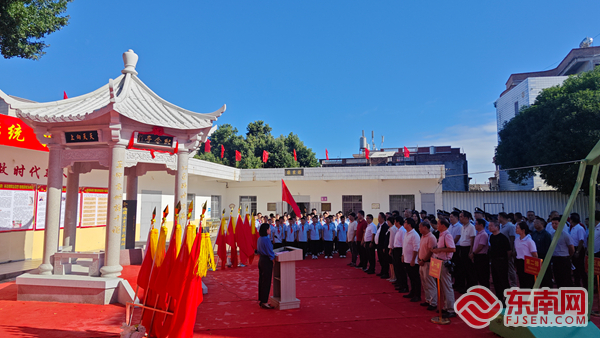 揭牌仪式现场。东南网记者 林杰 摄 东南网11月18日讯(本网记者 林杰)11月15日,在惠安县锦水中学迎来建校31周年之际,锦水中学红色纪念亭在校园正式落成,为传承红色基因再添新平台。泉州市老促会有关负责人,惠安县、螺阳镇相关部门领导,大锦水革命老区村乡贤代表、锦水中学部分师生代表参加纪念亭揭牌仪式。 据介绍,锦水中学红色纪念亭是惠安县委、县政府为老区村办实事项目,泉州市老促会2024年挂钩帮促项目,同时也是惠安县老促会开展“老区精神和革命传统教育进校园”活动的项目之一。 揭牌仪式现场,全体人员向为惠安人民解放事业牺牲的革命烈士默哀,少先队员献唱歌曲《我们是共产主义接班人》。