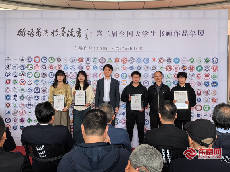 东南网11月25日讯(本网记者 谢玉妹)端庄秀美的小楷、龙飞凤舞的行书、笔触细腻的线条与清新淡雅的颜色交织成一幅幅高雅灵动的国画……11月25日,以“丝路万里·水墨流香”为主题的第二届全国大学生书画作品年展暨2024全国大学生书画艺术教育研讨会在泉州师范学院开幕。