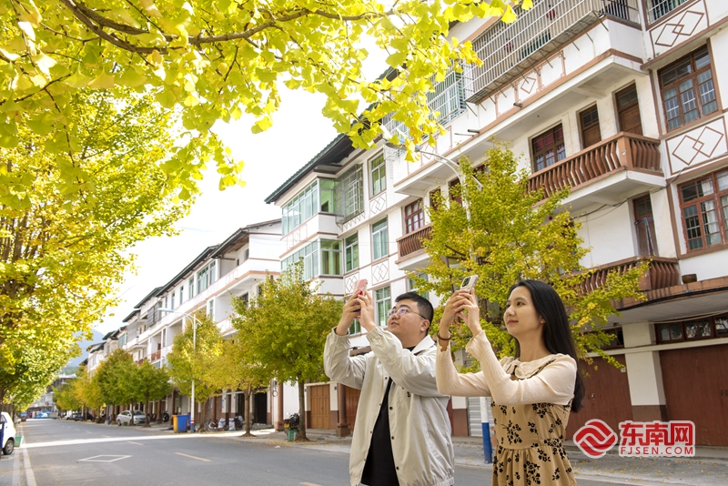 德化县上涌镇杏仁古街的银杏吸引不少游客驻足。吴有森 摄