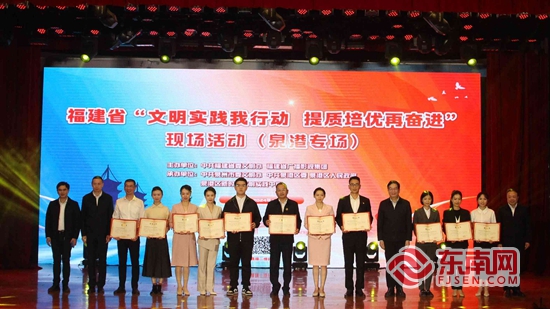 为创新案例颁发证书。张钰琪 摄 新时代文明实践成果展:分享智慧与经验 公益广告刊播、文明实践特色标志标识展示、泉州市新时代文明实践优秀成果展、泉港区新时代文明实践便民服务集市及文艺汇演……活动现场,一系列新时代文明实践成果展犹如一幅绚丽的画卷,全面展示了各地在文明实践工作中取得的丰硕成果。 此次展览共收集到标识标语101条、公益平面广告80幅、视频作品70部,通过图片、文字、实物等多种形式,呈现了文明实践活动在理论宣讲、思想引领、道德教化、文化传承、志愿服务等方面的显著成效。一幅幅照片记录着志愿者们辛勤付出的身影,一个个数据见证着文明实践活动的广泛覆盖和深入开展,一件件实物体现了文明实践工作与地方特色文化的有机融合。成果展吸引了各地到访的文明实践工作者驻足观看,他们在参观过程中深刻感受到文明实践工作的强大力量和深远意义。 活动期间,还举办了泉州市新时代文明实践骨干培训班。培训班邀请了业内专家、资深从业者担任讲师,他们围绕新时代文明实践的理念、工作方法、项目策划与管理等重要内容进行了深入讲解。值得一提的是,此次现场活动,更为全市各地文明实践工作骨干们提供了全方位、多层次的学习体验。 主办方指出,此次“文明实践我行动 提质培优再奋进”现场活动的举办,旨在深入贯彻落实党的二十大和二十届二中、三中全会精神,认真学习贯彻习近平总书记来闽考察重要讲话精神,贯彻落实省委工作要求,进一步推动全省新时代文明实践深化拓展,为推动精神文明建设迈向新台阶作出更大的贡献。 附:福建省文明实践现场活动展示交流创新案例名单 《实施“2356”工程 打造“泉”民文明实践圈》——中共泉州市委文明办 《添文明色彩 绘幸福画卷——走进树兜幸福里“一刻钟幸福圈”》——福州市鼓楼区树兜社区新时代文明实践站 《结对共建奏响文明实践协奏曲》——福州市晋安区委宣传部(文明办) 《“村网共建”文明实践工作机制》——中共漳州市委文明办、国网漳州供电公司 《文明实践“四单”模式 服务群众“零距离”》——中共诏安县委宣传部(文明办) 《“新时代文明实践集中活动日”推进文明实践提质增效》——中共石狮市委宣传部(文明办) 《多彩乡村会客厅赋能振兴绘新景》——龙岩市新罗区适中镇人民政府、龙岩新时代文明实践谢华安院士基地 《融入“一乡一品”农村综合文化节 打造新时代文明实践宣传新阵地》——中共长汀县委宣传部(文明办) 《“岁月年轮”敬老摄影百村行志愿服务》——中共周宁县委宣传部(文明办) 《讲好“下党故事” 打造新思想“学习小镇”》——寿宁县下党乡新时代文明实践所 《泉港:文明实践为幸福加码》——泉州市泉港区委宣传部(文明办)