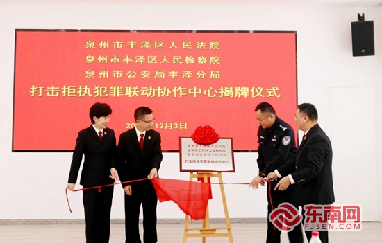 揭牌仪式现场。丰泽区委宣传部 供图 东南网12月5日讯(本网记者 黄雨昕 通讯员 洪志阳)为提高公检法在打击拒执犯罪领域的沟通协调力度,加强打击拒不执行判决、裁定罪,进一步推进营商环境持续优化,近日,丰泽区人民法院、丰泽区人民检察院、公安丰泽分局联合成立的全市首家打击拒执犯罪联动协作中心举行揭牌仪式。 打击拒执犯罪联动协作中心设立在丰泽区人民法院,丰泽区人民法院、丰泽区人民检察院、公安丰泽分局三家机关将定期召开联席会议,通过协同配合、构建联动机制、拓宽线索渠道,形成合力严厉打击拒执犯罪。揭牌仪式结束后,丰泽区人民法院联合丰泽区人民检察院、公安丰泽分局组织召开第一次打击拒执犯罪联席会议,会议分析了当前拒执犯罪面临的形势和存在的疑点难点,并对近期移送的涉嫌拒执罪的线索进行了逐案研判,同时各方就拒执罪的审查、认定标准,法律适用以及今后的对接流程、协作方式进行深入交流。各方一致表示,要加强信息互通、充分发挥各自的职能优势,建立健全联络员制度,共同促进打击拒执犯罪联动协作机制取得实实在在的新成效。 此外,12月4日国家宪法日当天,丰泽区人民法院联合丰泽区人民检察院、公安丰泽分局前往浦西万达广场联合开展“严厉打击拒执犯罪 全力护航法治营商环境”法治宣传活动,通过发放宣传资料、法律咨询等方式,向群众介绍拒不履行生效判决、裁定罪的相关法律规定及最新司法解释,强化市民诚信守法意识。 丰泽区人民法院率先成立全市首家打击拒执犯罪联动协作中心,是合力解决执行难题,构建诚信丰泽和法治丰泽的有益探索与创新。丰泽区人民法院将以此为契机,严厉打击拒执违法行为,常态化开展拒执案件移送工作,保持打击拒执罪的高压态势,坚决打通执行工作“最后一公里”。 |