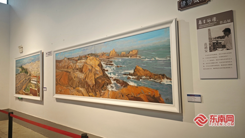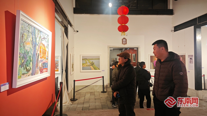 仪式现场。邓文祥 摄 东南网12月16日讯(本网记者 林杰 杜志鑫 通讯员 欧阳荣华)12月15日,中国百名油画家主题系列活动福建泉州段采风创作作品展在惠安小岞美术馆开展。展览从即日起持续至明年2月17日,共展示160多幅优秀油画作品。 今年8月16日,“万里海疆——中国百名油画家主题系列活动福建泉州段采风创作活动”在惠安启动,在为期10天的时间里,23位来自全国各地的油画名家深入泉州市区、惠安县小岞镇和崇武镇、晋江市、洛江区等地采风写生,他们以海岛风光、文化遗址、闽南建筑、惠安女等丰富的自然与人文素材为灵感源泉,用画笔创作出了160多幅油画作品。 惠安县政协主席黄丽琼在致辞中表示,本次作品展既是一场艺术盛宴,也是一次交流机会,油画名家们以五彩画笔展现泉州快速发展的卓越成就和蓬勃态势,描绘惠安蒸蒸日上、繁荣美好的光明前景。透过这一幅幅艺术精品,我们感受到了海丝泉州清新隽丽的自然风景,感受到了悠久的渔家文化和独特的惠女风情,更是在精神层面接受了一次崇高的美学洗礼。 活动现场,中国美术家协会主席范迪安、北京当代中国写意油画研究院院长王辉、泉州市美术家协会主席郭宁分别向泉州市、惠安县和小岞镇赠送油画作品。