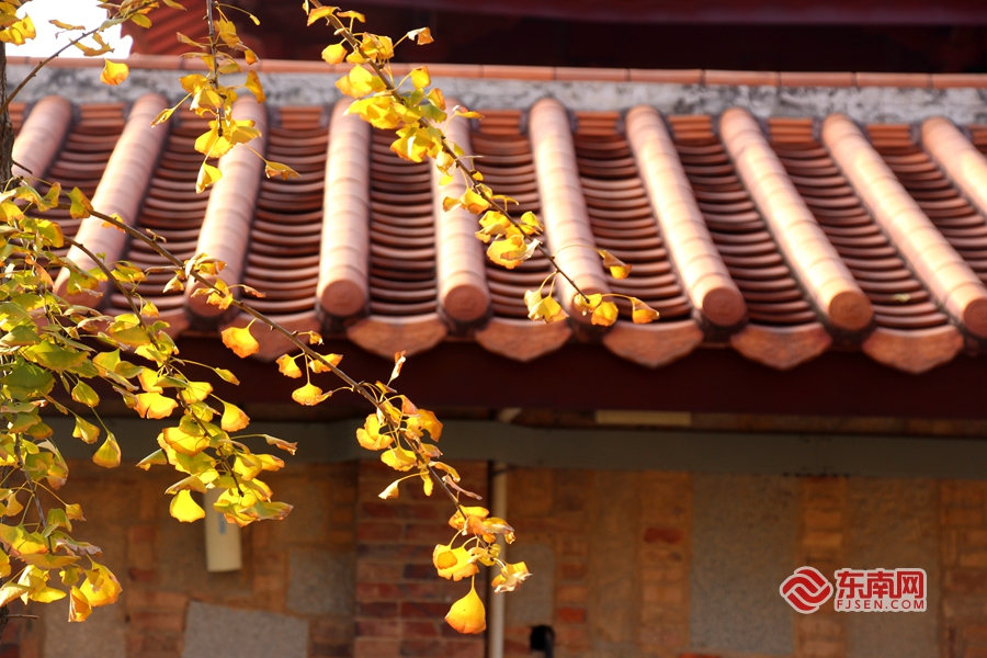 银杏在古寺建筑的映衬下,别有一番韵味。东南网记者 黄雨昕 摄