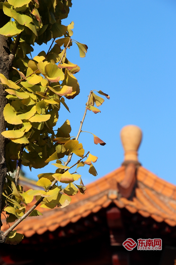 银杏在古寺建筑的映衬下,别有一番韵味。东南网记者 黄雨昕 摄