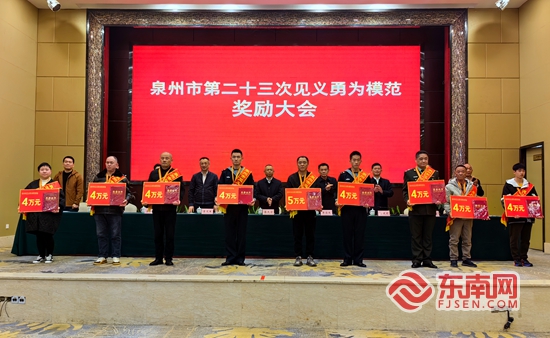 见义勇为模范接受表彰。东南网记者 陈培源 摄 东南网1月2日讯(本网记者 陈培源 通讯员 陈靖涵)近日,泉州市第二十三次见义勇为模范奖励大会召开,会上表彰31名见义勇为模范,他们大多是普通群众,但他们的事迹,彰显了人性之美、正义之举,蕴含了时代之魂。 此外,现场同时表彰了5个见义勇为先进单位、17个见义勇为先进工作站、8个见义勇为志愿者优秀集体。与会领导向受奖励的见义勇为人员和先进单位(工作站、志愿者集体)颁发证书、奖牌以及奖金共计98万元。 本次受表彰的人中,有见人跳河轻生时,奋不顾身跳入河中救人,被水冲走不幸牺牲的年轻女孩贝成燕;有面对暴徒持刀杀人时,义无反顾冒着被砍伤砍死的危险,与暴徒展开殊死搏斗,并成功制服暴徒的杨琴、叶冬松;有面对歹徒砍杀无辜群众时,毫不畏惧,与歹徒斗智斗勇,同民警一起制伏歹徒的聂玉星;有面对波涛汹涌的海浪,不顾个人安危跳入海中,历经30多分钟的生死援救,成功救起溺水者的张迅、黄懿轩等等。一件件、一桩桩,都来自默默无闻的普通群众,却散发出无比耀眼的光芒。这些凡人善举中彰显了人间真情和强烈的社会责任感、正义感。这些勇士们,是人民利益的忠实维护者,是社会主义核心价值观的积极践行者,是中华民族传统美德的大力弘扬者,是时代的英雄和社会的榜样。 |
