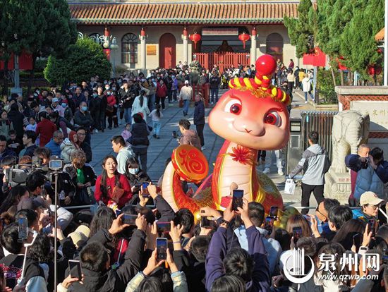 “海海”跳着拍胸舞来了,跟着大家一起“拍”走烦恼,“拍”来福气。昨日,泉州蛇年生肖IP“七彩刺桐蛇”艺术装置第三个作品“海海”出街,正式落座泉州市区威远楼。