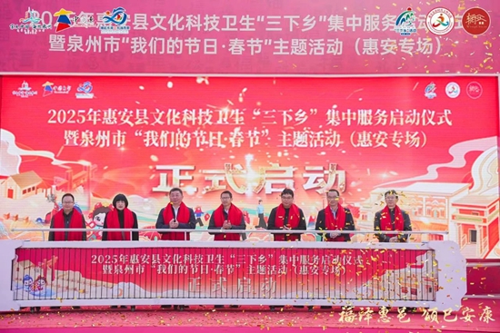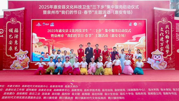 启动仪式 为深入学习贯彻党的二十届三中全会精神和习近平总书记在福建考察时的重要讲话精神,1月10日,由中共泉州市委文明办、惠安县新时代文明实践中心、中共惠安县委宣传部、中共惠安县委文明办主办的2025年惠安县文化科技卫生“三下乡”集中服务启动仪式暨泉州市“我们的节日·春节”主题活动(惠安专场)在辋川镇举办。 启动仪式在欢快的开场舞《蛇舞新春》中拉开帷幕,随后少儿舞蹈《幸福惠安年》、南音《百鸟归巢》、惠女舞蹈《惠女海丝情》、诗歌朗诵《英雄时代》、戏曲表演《欢庆人偶》等精彩节目轮番上演,为现场观众带来了一场视听盛宴,充分展现了惠安的文化魅力和独特风情,赢得了现场观众的阵阵掌声和喝彩声。