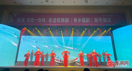 东南网1月14日讯(本网记者 黄雨昕)1月13日晚,泉港区一场别开生面的“文化一台戏”——非遗歌舞剧《寿乡福韵》新年展演在泉港区会议中心举行首演,不仅为当地群众带来了一场视听盛宴,更是对泉港非物质文化遗产的一次生动传承与弘扬。 《寿乡福韵》以泉港的非物质文化遗产为核心创作源泉,将本土深厚的文化底蕴巧妙地融入到舞台表演之中。整台歌舞剧通过优美曼妙的歌舞、动人心弦的旋律以及跌宕起伏、充满生活气息的生动剧情,淋漓尽致地展现了新时代泉港人民对福寿之乡的深深眷恋,以及对美好生活的无限热爱和诚挚祝愿 。