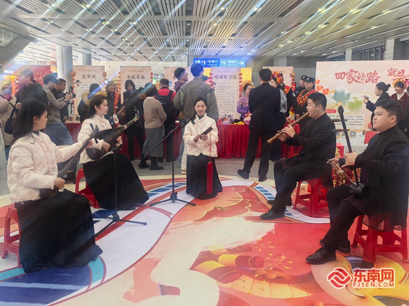 1月14日,正值春运首日,泉州动车站人流如织,候车室里张灯结彩,洋溢着浓浓的年味儿。为了让旅客在返乡途中感受“地道”的非遗春节、领略“出圈”的非遗之美,南铁漳州车务段在泉州站举办了“高铁喜逢非遗年 探寻海丝古韵美”主题活动,用满满的非遗年味和浓浓的非遗韵味,迎接即将到来的首个“非遗中国年”。