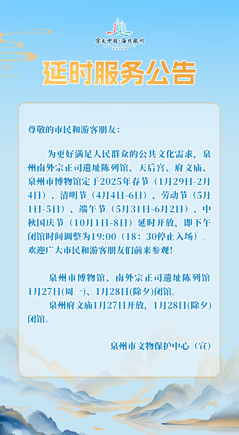 泉州这些文保单位春节期间延时服务