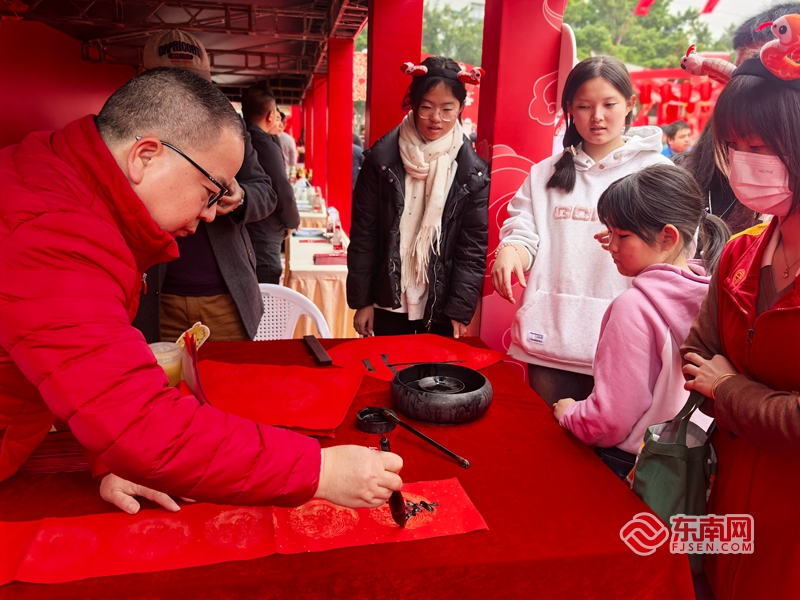泉州开发区书法家现场挥毫泼墨,为职工群众书写春联。东南网记者 谢玉妹 摄