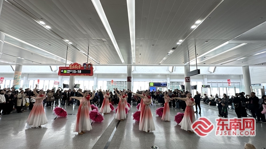 别开生面的春运非遗快闪吸引旅客驻足拍照。东南网记者 陈诗婷 摄