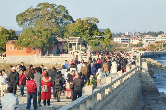 作为泉州世遗点之一,洛阳桥一直以来都吸引着无数游客的目光。蛇年第一天,古桥上人头攒动,不少本地群众全家齐出游,外地游客也纷纷慕名而来,共同感受这座古老桥梁的独特魅力。而桥南古街及桥头广场等地,大红灯笼和飘扬的彩旗,也为古桥增添了浓厚的新春氛围。 现场可以看到,许多本地群众“全家出动”,扶老携幼共同领略洛阳桥的风采。他们或是认真观摩古桥建造细节感悟古人智慧,或是驻足桥上远眺江面欣赏人与自然的和谐共生的美丽画卷,抑或是拍照打卡记录新年的团聚与欢乐……现场欢声笑语不断。 来自晋江的小朋友唐馨表示,“今天来洛阳桥,主要是因为大年初一早上拜完年下午刚好有空,之前对洛阳桥这座桥的了解并不是非常多,所以就亲眼过来看看。看完还是感叹古人的智慧吧,毕竟千年之前能造成这么大的古桥,也是就是运用了非常多的智慧,所以我们也要好好学习,将来用不同的形式造出更大的桥。” “大年初一放假,然后刚好跟家里人一起出来玩,就在洛阳桥走一走。然后还有过年氛围,人也特别多,挺热闹的。”市民陈苑莹说道。 与此同时,来自全国各地的游客也纷至沓来。沈阳游客郑学清今年春节选择来到泉州过年,充满年味和历史韵味的泉州城令他赞不绝口,洛阳古桥更是抽出了半天时间细细游览。“因为有个厦门朋友给我推荐,说洛阳桥很美、历史很悠久,他知道我喜欢历史古迹,就跟我说值得你去看一看。所以今天中午就直奔这儿来了,到这儿来呢觉得真的挺震撼,古人这个建造技艺还是挺有智慧的,确实值得来看一看。” 此外,在桥南举办的“悠游洛江 喜乐过年”2025年洛江区乡村好货新春美食嘉年华活动也吸引了不少人气。后续,洛江区还将依托洛阳古桥,在桥头广场及周边举办“非遗游园会”、梨园戏《陈三五娘》沉浸式互动演绎等文旅活动,确保洛江辖区“日日有活动、场场皆精彩”,从文旅活动、文旅惠民、文旅融合等三个方面为广大市民游客呈现丰富多彩的文旅盛宴。 值得一提的是,为确保游客安全和游览质量,洛江区以文旅经济发展指挥部牵头,各级各有关单位增派人手,加强春节期间景区景点及周边的安全管理和服务保障工作,并提供旅游咨询、义务讲解等服务,让广大市民游客在洛江游得开心、游得放心,确保大家在洛江过好年。(郭思婧 徐志威) |