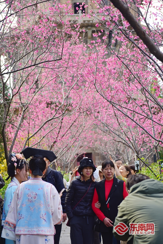美丽的樱花引得市民游客驻足拍照。东南网记者 林婕 摄
