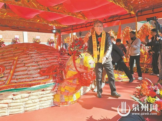 市民游客摸“大米龟” “摸龟头起大楼,摸龟嘴大富贵,摸龟身大翻身,摸龟脚吃不干,摸龟尾吃到有头有尾。”昨日,由泉州和台湾澎湖两地妈祖宫、天后宫联合举办的“平安米龟、水果龙”点睛祈福仪式在泉州霞洲妈祖宫圆满举行,市民游客摸“大米龟”、赏民俗表演、游园,共同祈盼新一年国泰民安、家庭幸福。 活动开始前,锣鼓声响彻云霄,由平安米制作而成的“米龟”早已准备就绪,4条由菠萝、辣椒等水果和蔬菜组成的“水果龙”盘旋于妈祖宫前的扶手之上,惟妙惟肖。活动现场,霞洲青狮阵、舞龙武术队率先登场表演,瞬间点燃在场群众的热情。 随后,市民游客一齐走过平安桥,接过工作人员手里煮熟的红鸡蛋,来到米龟前,顺时针俯身绕行大米龟,通过触摸“米龟”的头部、尾巴和脚等部位,祈求新的一年有新气象。据悉,今年的米龟重达5万斤,为历年来最大,“平安米”将在后续分发给社会福利院、困难户、低保户、环卫工人、妈祖信众等。 “乞龟”是极具特色的元宵民俗活动,主要流行于泉州和澎湖一带。今年1月,82岁的原澎湖天后宫老主委杨国夫早早来到霞洲,与霞洲工作人员一同制作米龟。“澎湖有90%的群众都是从泉州移民过去的,希望通过一年一度的活动,让‘乞龟’文化在泉州发扬光大。”杨国夫表示,元宵“乞龟”习俗由泉州传至台湾,根据习俗,每年米龟的体积都要比前一年有所增大,意味着人们丰衣足食,日子越过越好。 活动主办方还精心准备了2000个红鸡蛋、经典斋面以及一批金钱龟。此外,令人耳目一新的还有新春游园活动,游园会上展示了由霞洲IP形象衍生开发而成的文创产品。相关负责人俞琳琳介绍,此次文创设计以霞洲妈祖宫妈祖像、霞洲青狮少年以及青狮阵狮头为设计基础,将年轻化的元素融入文创设计,旨在将妈祖文化和精神内涵传承下去,彰显文化自信。 泉州霞洲妈祖宫董事长蔡景民介绍,霞洲妈祖宫始建于1622年,距今已有400多年的历史。 (泉州晚报融媒体记者杜婉琼 文/图) |