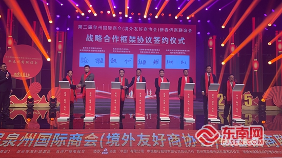 境外友好商协会与泉州国际商会会员企业、泉州市相关行业协会进行签约。东南网记者 黄雨昕 摄 “企业家们凭借着坚韧不拔的毅力、敏锐的市场洞察力和勇于创新的精神,在各自的领域辛勤耕耘,取得了令人瞩目的成就。”泉州市委常委、宣传部长、统战部长刘林霜表示,泉州将一如既往地为境外友好商协会、侨商朋友、泉州国际商会企业家们回乡投资兴业、企业做大做强,做好坚强保障、提供最优服务。 中国贸促会贸易推广交流中心主任闫芸表示,泉州作为我国重要的制造业基地和外贸出口城市,在出口品牌建设方面具有得天独厚的优势,中心将充分发挥自身优势、大力支持泉州外贸发展,助力泉州企业走向世界。 此次新春侨商联谊会的举办,进一步激活“联通政企、融通内外、畅通供需”贸促职能,推动资源、项目、人才“三个回归”,不断促进经贸交流与对外合作,激发更多侨商泉商莅泉投资兴业,鼓励更多外贸企业“出海”创汇,为泉州与海外搭建起沟通合作的桥梁,也为泉州企业“走出去”注入了新的活力,助力泉州在新的一年书写更加辉煌的发展篇章。 |