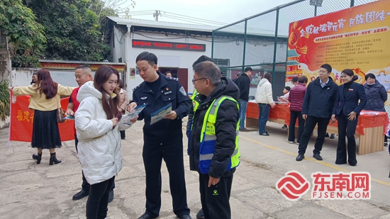 公益宣传。主办方供图 综合宣传区秩序井然,廉政建设、民族团结、综治平安、新型婚育文化等宣传展板有序陈列,泉州市公安局城东派出所挂点警长谢鸿霖及党员志愿者积极行动起来,开展反诈、禁毒、反邪教、殡葬移风易俗等各类宣传,助力居民提升综合素养,为社区和谐发展筑牢思想根基。