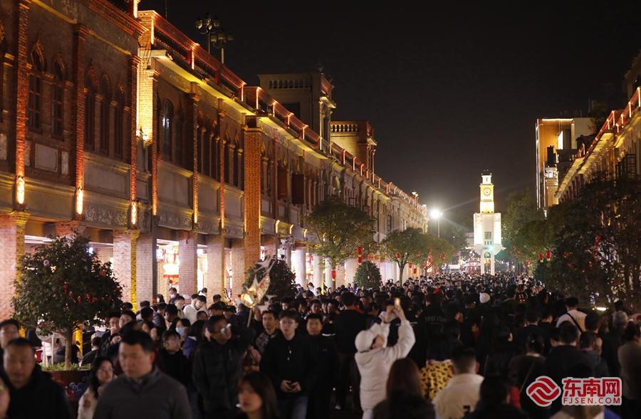 正月十四晚上,中山路游客如织。东南网记者 陈培源 摄