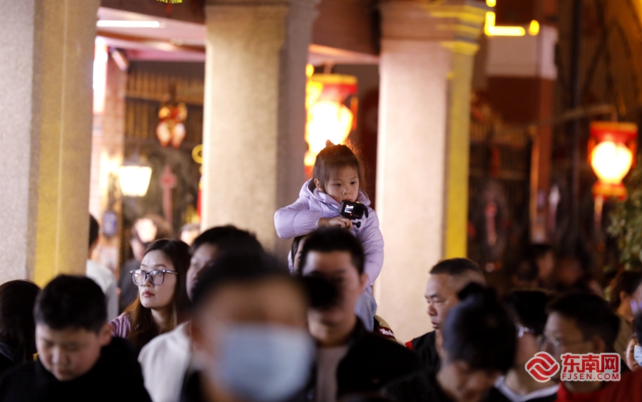 骑在父亲肩上的小女孩,也在记录今晚的盛况。东南网记者 陈培源 摄
