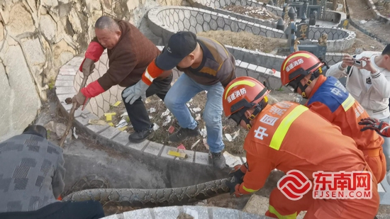 抓捕现场。消防供图 东南网2月12日讯(本网记者 陈诗婷 通讯员 陈龙山)2月10日下午4时15分许,泉港区涂岭镇松园村松园陵园出现一条大蛇,正在工作的村民们十分惊恐,并报警求助。接到指挥中心调度后,泉港区南埔消防救援站立即出动1车6人赶往现场处置。 消防救援人员到场确认,现场为缅甸蟒蛇,预估长度达3米长、体重超50斤。为了避免对蟒蛇造成伤害,消防救援人员立即通知泉港区自然资源局林业股、护林员协同处置。与此同时,消防救援人员在现场负责值守,避免蟒蛇逃窜。 随后,林业部门和护林人员相继到达现场。经过现场二次侦查、评估,消防救援人员寻找木枝加工成捕蛇器,在护林人员的协助下,利用木枝控制住蛇头,其他人员协助控制蛇身,并将蟒蛇顺利装入准备好的捕蛇袋中,随后移交林业部门进一步处置。 据村民魏秀宝介绍说,当时她和其他两个村民正在清理杂草,突然发现一个巨大的影子出现在眼前,还沙沙的声音,定睛一看竟是一条大蛇,正准备往水沟的孔洞逃走,后来蟒蛇受到惊吓沿着围墙爬到墓地上。 据了解,早在四年前,当地居民就发现鸡舍出现鸡鸭不见的情况,而且村民也见到蟒蛇出没,但是始终没能抓住。此次蟒蛇再次出动,外出觅食并感受着冬日里的暖阳,正巧被村民发现。泉港区自然资源局林业股相关工作人员表示,该蛇将在报备后,计划送往动物园进一步保护。 消防部门提醒,如果遇到紧急情况,比如蛇进入居民区或其他不适宜的地方,可以联系当地的野生动物救助组织或者消防部门寻求帮助。 |