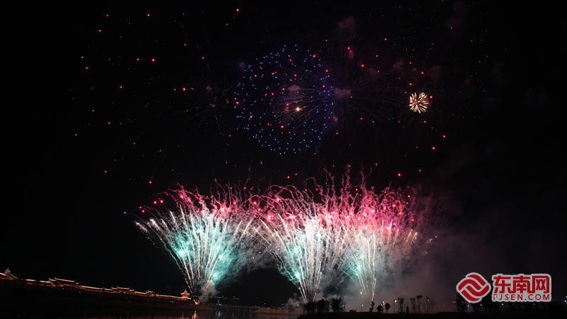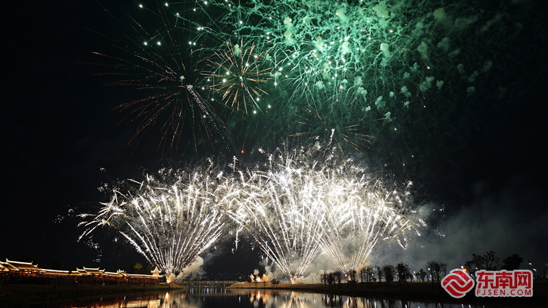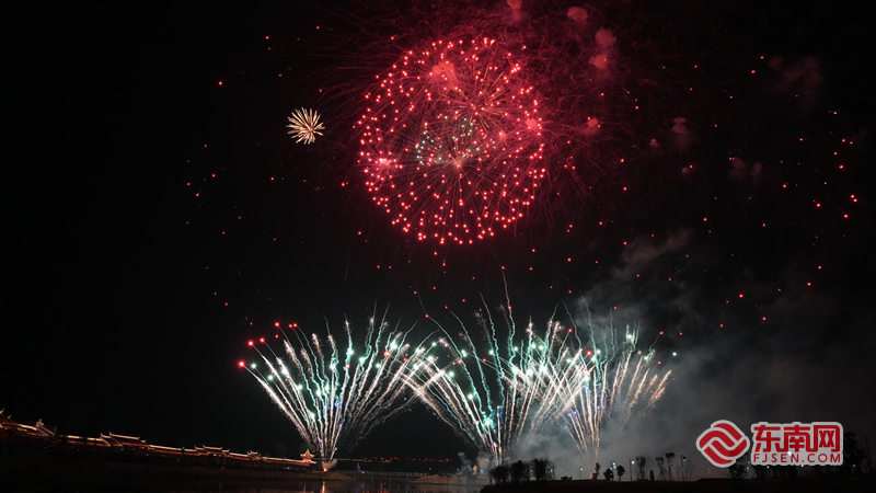 网幕烟花燃放区域呈现了惠安城市品牌标识。邓文祥 摄