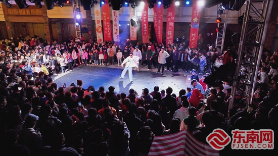 表演现场。陈小强 摄 东南网2月12日讯(本网记者 施远圻 通讯员 苏榆轴)2月11日晚,顶级街舞邀请赛在永春五里古街激情上演,吸引了众多市民和街舞爱好者前来共赴这场热血舞蹈盛会。 古街灯火辉煌,现场人山人海。此次邀请赛阵容强大,邀请了多位街舞界的实力大咖。随着动感的音乐响起,沈超、林智敏、郭凤亮、武振军、卡通等街舞大咖们依次登场,他们用精湛的舞技和独特的舞台风格瞬间点燃了现场气氛,一系列高难度街舞动作让人目不暇接。观众们沉浸式欣赏“舞林高手”间的对决,时不时爆发出阵阵掌声和欢呼声。 “本身我也有学爵士舞,所以我在现场看肯定比较喜欢。古街请这些舞者都跳得非常好,特别是刚才的四个很精彩。”观众陈女士说。