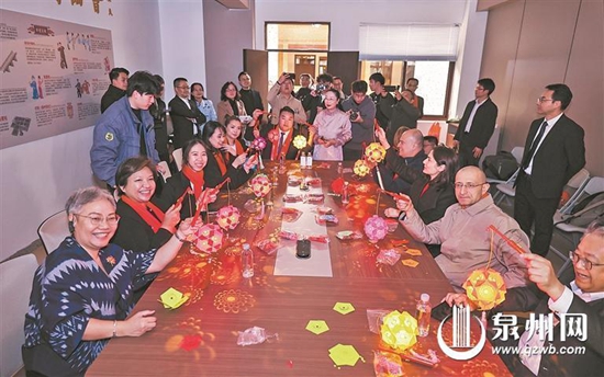 在泉州工艺美术厂,总领事们携家人一起体验花灯制作非遗技艺。(林劲峰 摄)