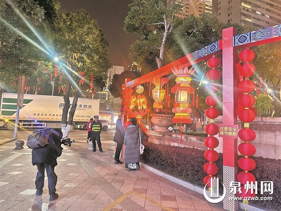 昨日虽已过元宵,且天气寒冷,但泉州的元宵气氛不减。因正月十五当天下雨,许多未能出门赏灯的市民昨日走上街头,观赏流光溢彩的花灯。