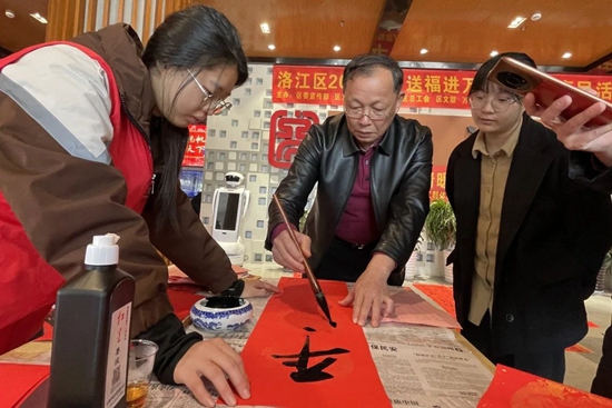 2025年春节前夕,洛江区图书馆一楼大厅内洋溢着浓厚的节日氛围,1月7日,在这里举办了2025年首场洛江区“送福进万家”文化惠民活动。本次活动邀请到10位书法家现场挥毫泼墨,根据市民和外来务工人员选出的心仪春联文字,为他们量身定制新春祝福。不仅丰富了群众的文化生活,更全方位展现了书法艺术的多重魅力,为洛江区文化事业增添了亮丽一笔。 活动当天,红纸与墨香交织出浓厚的节日氛围。在书法家们的笔下,楷书的端庄大气,隶书的古朴典雅,行书的流畅自然,草书的奔放不羁,都被一一呈现。市民和外来务工人员有序排队,领取这份特别的节日礼物。 随着活动的持续,这份独特的文化韵味将随着书法家们的足迹,巡回至洛江区的各个乡村社区,把新春的祝福与文化的美好传递到每一个角落。 此次活动由中共泉州市洛江区委宣传部、洛江区文化体育和旅游局、洛江区总工会、洛江区文学艺术界联合会、洛江区万安街道办事处主办,洛江区图书馆洛江区书法家协会承办。(郑胜男) |