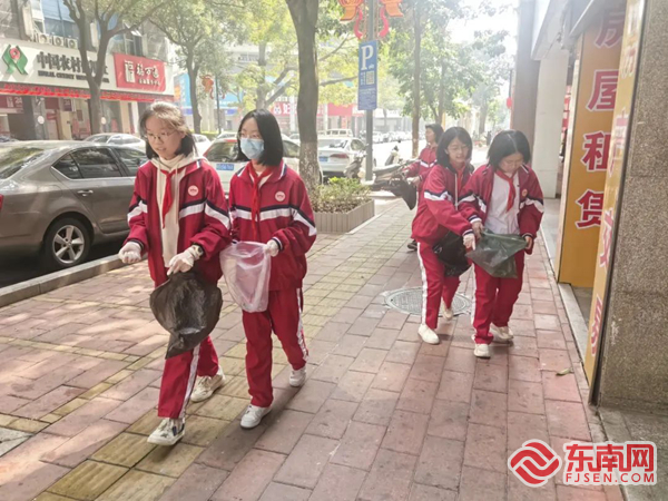 同学们上街拾捡垃圾。惠安一中 供图 |