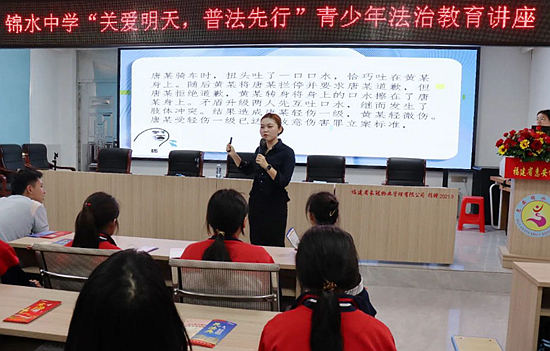 近日,一场以“关爱明天 普法先行”为主题的青少年法治教育活动在惠安锦水中学开展。 活动邀请华商(泉州)律师事务所谢嘉璐律师围绕看见犯罪、走进犯罪、预防犯罪等内容进行授课。谢律师以青少年身边经常发生的真实犯罪案件为切入点,对聚众斗殴罪、寻衅滋事罪、侮辱罪以及帮信罪等常见犯罪类型展开深入浅出的剖析,告诫同学们违法犯罪绝非儿戏,一旦触碰,必将给个人、家庭乃至社会带来难以估量的伤痛。