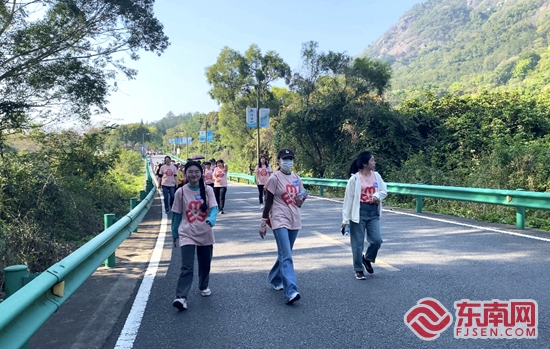 步行过程中,队员们欣赏沿途风景。东南网记者 黄雨昕 摄 |