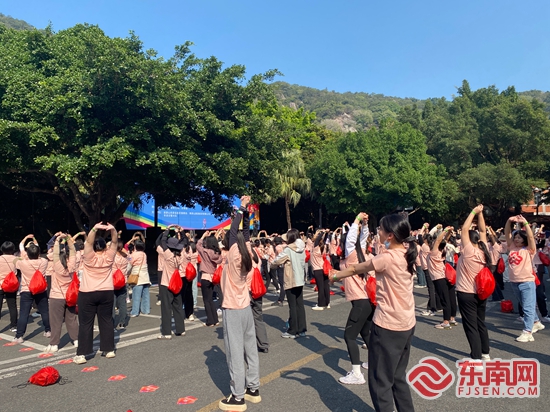 活动现场,参与队员们正在热身。东南网记者 黄雨昕 摄