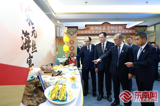 领导嘉宾参观了解泉州美食。石狮市委宣传部 供图 泉州的美食,是与世界融合的味道,来自泉州石狮的“宋元海丝宴”正是泉州美食的代表作之一。该主题宴席以南宋石狮籍美食家林洪所著的《山家清供》为蓝本,紧密结合宋元时期泉州作为“世界海洋商贸中心”的饮食交流历史脉络,深度挖掘石狮山珍海味奇妙的融合技艺,既有依据古籍精心复原的全书104道经典佳肴,也有对闽南本地名菜进行大胆创新的得意之作。全宴涵盖前菜、汤羹、主菜、主食、甜品等多个品类,共计127道精美菜品,兼收闽南名菜,集山珍海味于一席,融海丝、商贸、宗教等元素于一体,菜品、宴席与宋元器皿、场景、乐曲、诗词等完美契合,不仅淋漓尽致地展现了闽南饮食文化的深邃精髓,更承载着千年海丝文化的厚重底蕴。 当下,泉州市正全力申创“世界美食之都”。为了向全国,乃至世界展示泉州美食的魅力,由福建省工信厅、福建省商务厅、福建省驻京办、中共泉州市委、泉州市人民政府指导,泉州市申创“世界美食之都”工作专班、泉州市工业和信息化局、泉州市商务局、泉州市外事办、中共石狮市委、石狮市人民政府等单位联合在北京福建大厦举办“石狮‘京’宴 海丝启航”活动。本次“宋元海丝宴”外国驻华使节专场品鉴会就是活动的重头戏之一。