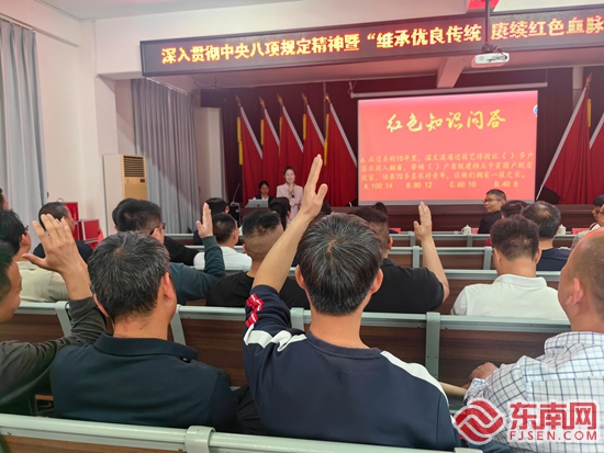 红色知识问答环节,党员们踊跃参与。谢吉柳 供图 “南瓜蒂上为什么长白银?”“借来的百两黄金主要用来做什么?”……穿插在宣讲间隙的一连串红色知识问答,引发在座党员们争相抢答,中央八项规定精神在红色故事与身边榜样的映衬下,更为清晰地烙印在大家的心间。 活动最后,主办方一行来到佛仔格中共安溪中心县委旧址,共同追溯红色记忆。中共安溪中心县委是土地革命战争时期泉州地区建立的级别最高的地方党组织,领导创建了安南永德苏区,成为中央苏区鼎盛时期向外拓展区的有机组成部分,在安溪和泉州革命史上具有重要的历史地位。如今,旧址承载的厚重历史和蕴含的不朽奋斗精神,仍激励着人们继承优良传统、赓续红色血脉。