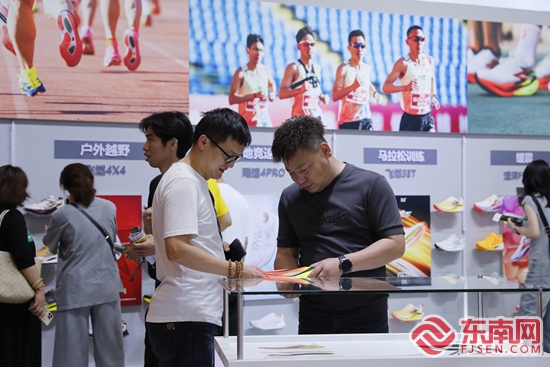 展商正在向本网记者介绍展品。东南网记者 陈诗婷 摄 东南网4月20日讯(本网记者 陈诗婷)4月19—22日,第二十六届中国(晋江)国际鞋业暨第九届国际体育产业博览会在晋江国际会展中心举办,70多个国家和地区的516家海内外展商参展。这个有着26年历史的行业展会,已成为目前全国乃至全球运动鞋服行业规模最大、规格最高、影响力最大的展会之一。 科技智能飞跃 产业“链式升级” 本届展会,科技创新仍将是最耀眼的标签。当记者走进展区,随处可见酷炫的高科技体育用品,以安踏、361°、卡尔美等为代表的企业在展会现场发布“人工骨骼”、超轻碳板、疾速5.0等新产品。 以跑步、篮球、儿童三大展区为核心的361°展区,通过场景化设计呈现其在专业运动领域的研发成果与产品布局。“作为体育产业发展的风向标,晋江鞋博会不仅是产品展示的窗口,更是品牌战略升级的支点。”相关负责人告诉记者,361° 将持续以科技赋能产业生态,深耕专业运动领域,在为消费者提供更多高品质运动装备的同时,构建更具韧性的产品竞争壁垒,为中国体育产业高质量发展注入强劲动能。